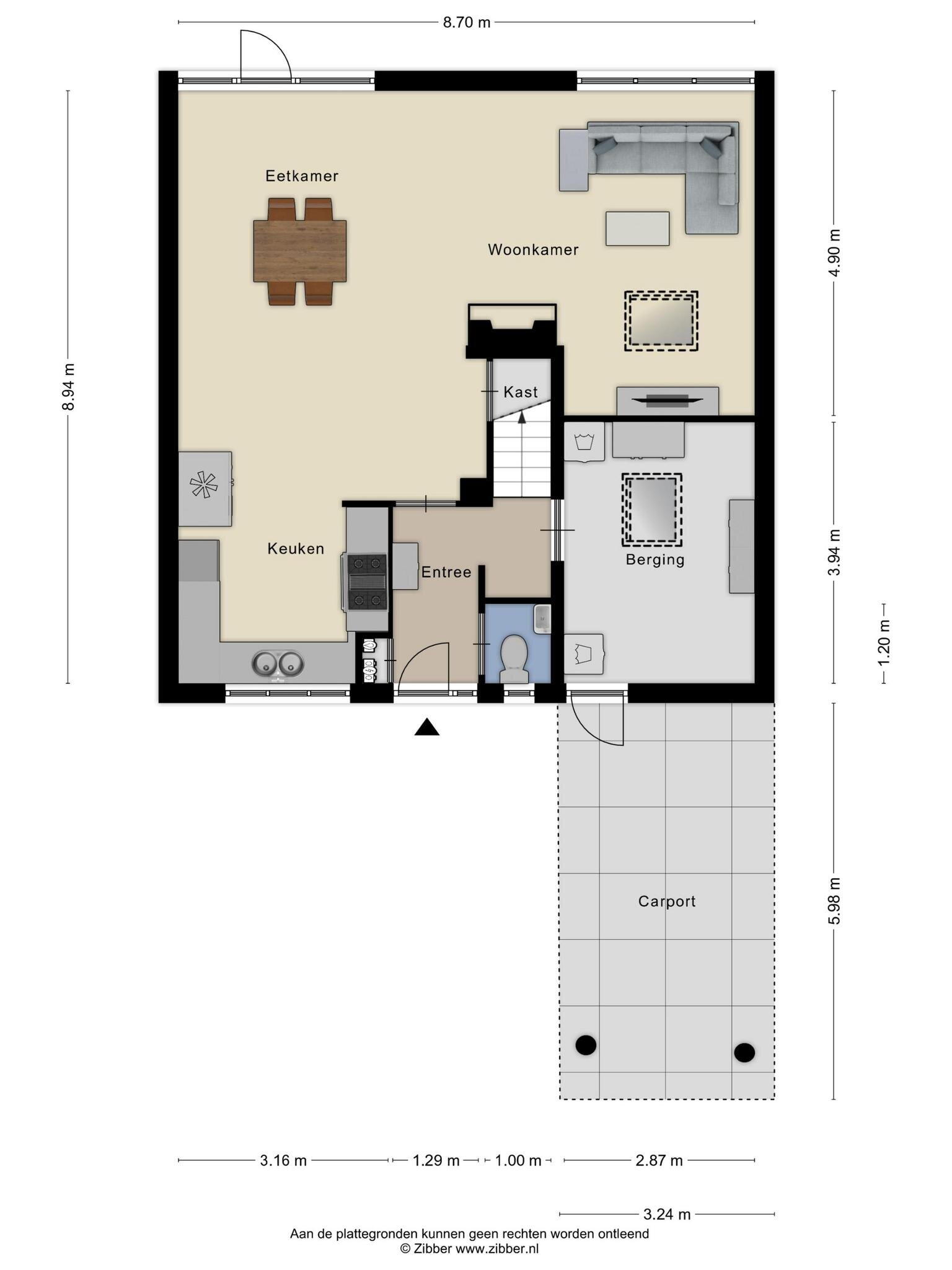Bij aankomst beschik je over een privéoprit, waardoor parkeren altijd moeiteloos gaat. Via de voordeur kom je binnen in de nette hal met een toilet en directe toegang tot de berging en de woonkamer. Laten we hier beginnen!